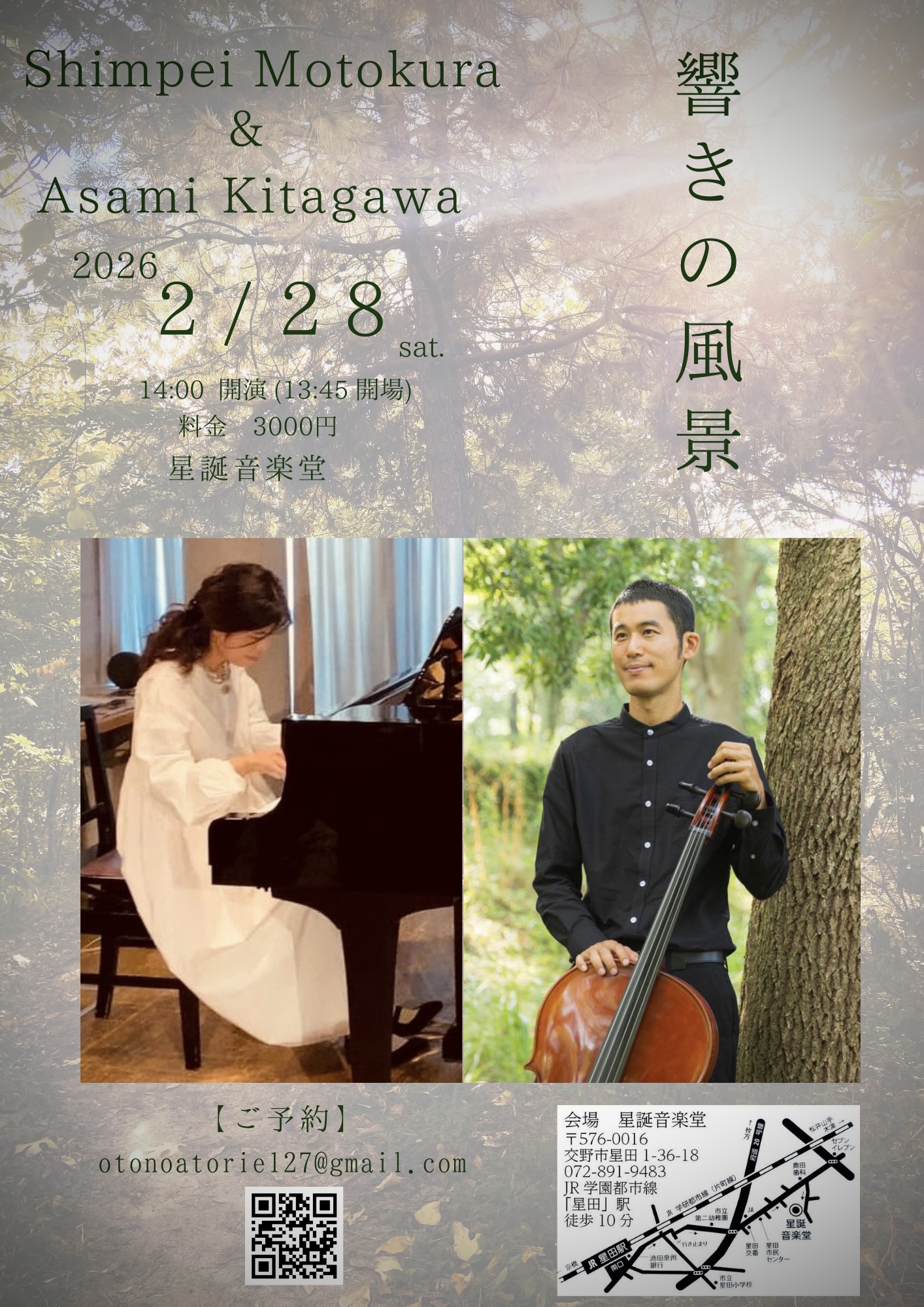 深く呼吸するようなチェロの音色と、脈動紡ぐピアノの静と動の響きの風景にどうぞ出逢いにお越しください。