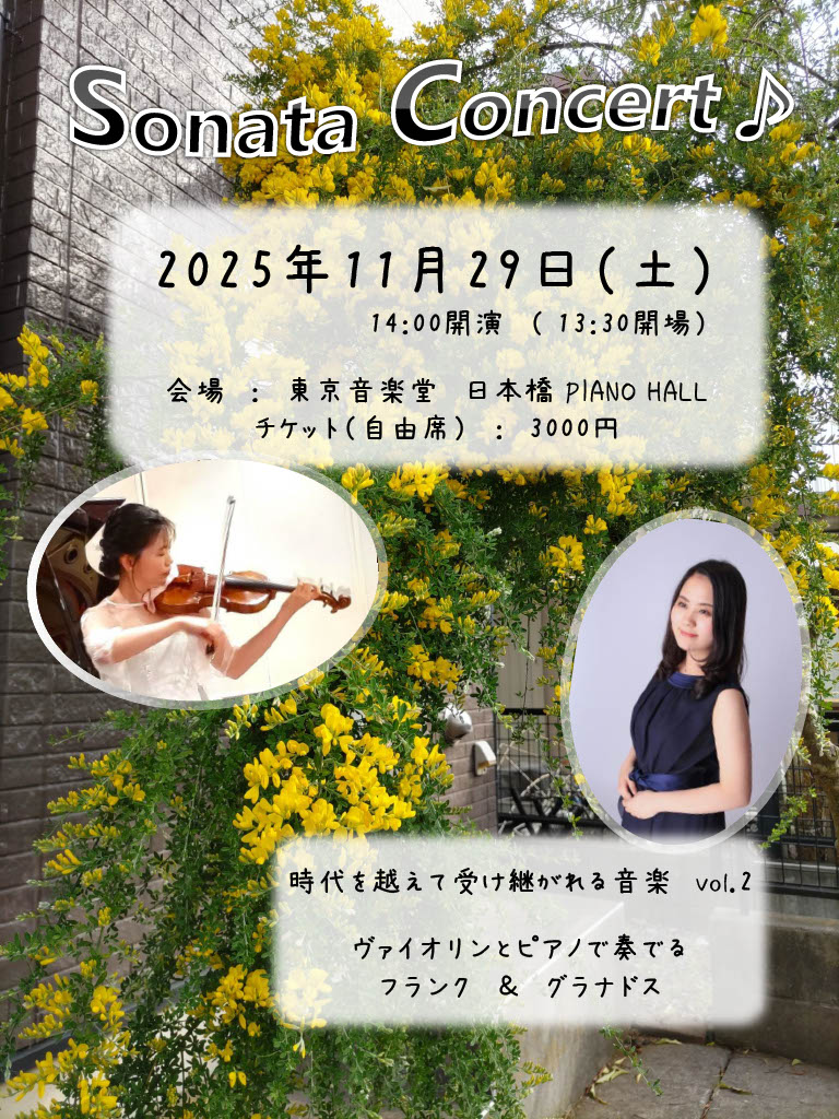 演奏機会の少ないスペインの室内楽と、フランクのヴァイオリンソナタを演奏します。